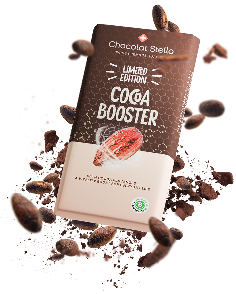 Dark chocolate with extra cocoa flavanols – the natural everyday booster.