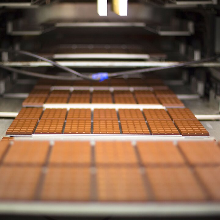 As for what shape the chocolate should finally take, there are almost no limits to what can be created. Chocolate bars of different weights, solid, filled or with extra ingredients such as nuts or sultanas – these are just some of the possibilities. There are also small chocolates such as napolitains, lunches, bars, branches and pralines with a wide variety of fillings. Seasonal items such as Easter bunnies or decorations for Christmas trees also feature in the range. Other popular lines include couvertures and semi-finished products for confectioners, patisseries and industrial enterprises.